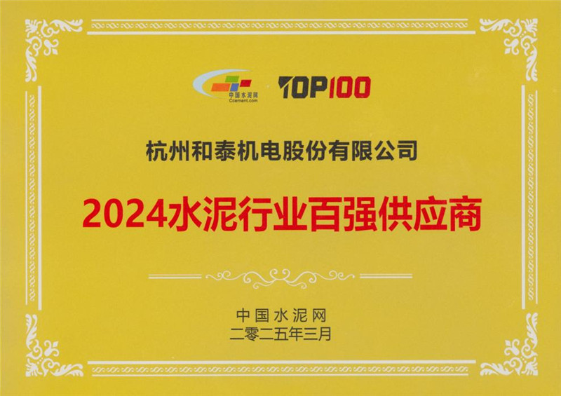 2025年3月13日,在“第十四屆中國水泥產業峰會暨TOP100頒獎典禮”上,杭州和泰機電股份有限公司再度榮獲“2024水泥行業百強供應商”榮譽稱號!